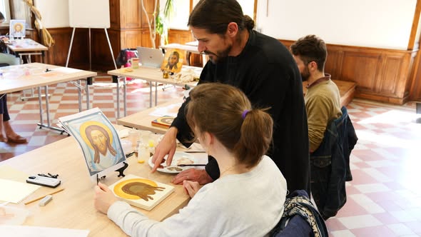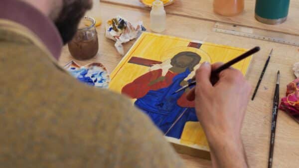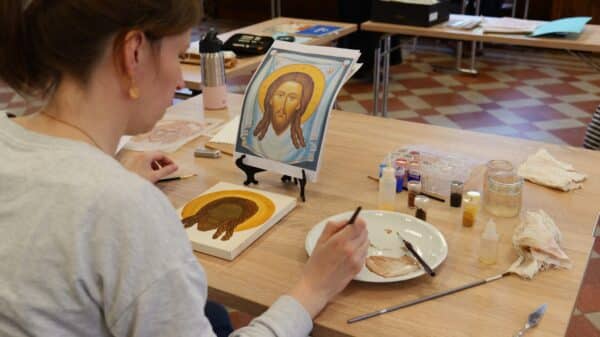 Apprenez à « écrire » une icône selon la tradition byzantine et orthodoxe. Maël Boureux, peintre iconographe, vous accompagne de la préparation du support jusqu’aux finitions.