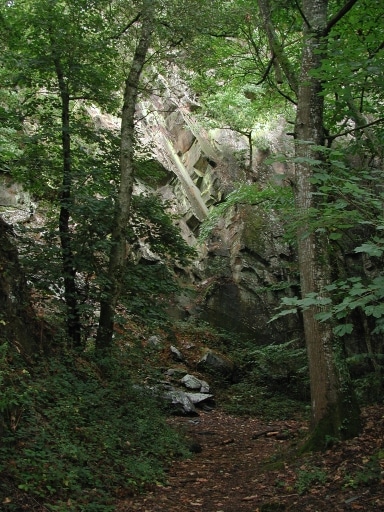 On trouve de nombreuses carrières à ciel ouvert sur la commune, par exemple cette carrière de schiste, à l’est de la Roche du Theil, qui a fonctionné jusqu’en 1950, avant le développement des constructions en parpaings.