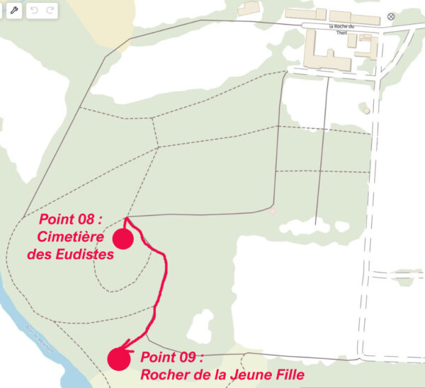 Chemin pour aller au point n°9 : le rocher de la Jeune Fille