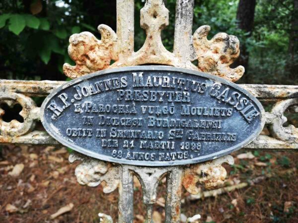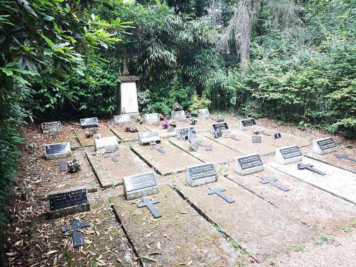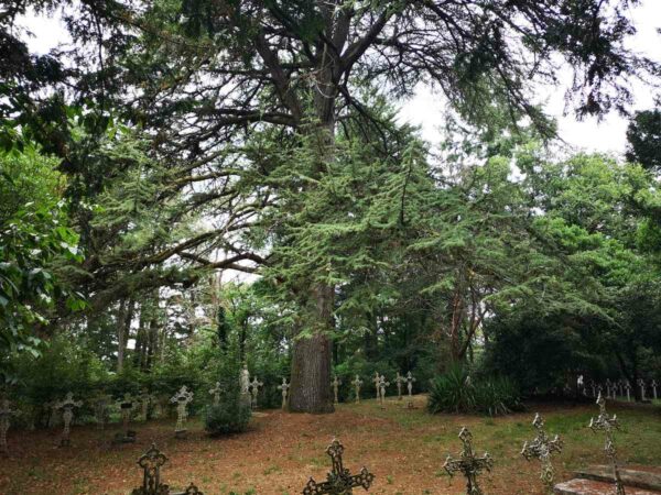 Aujourd’hui environ 200 Eudistes sont enterrés dans ce cimetière qui leur est réservé. C’est un exemple rare de cimetière privé, construit sur 3 niveaux, correspondants aux 3 périodes : de 1840 à 1900 environ, puis de 1900 à 1950 et enfin les tombes plus récentes de 1950 à aujourd’hui. Les tombes sont très sobres, à l’image des cimetières monastiques. Remarquez la distinction entre Frères et Pères !