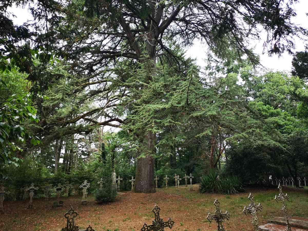 On remarque de très majestueux cèdres du Liban qui ombragent cette partie du parc.